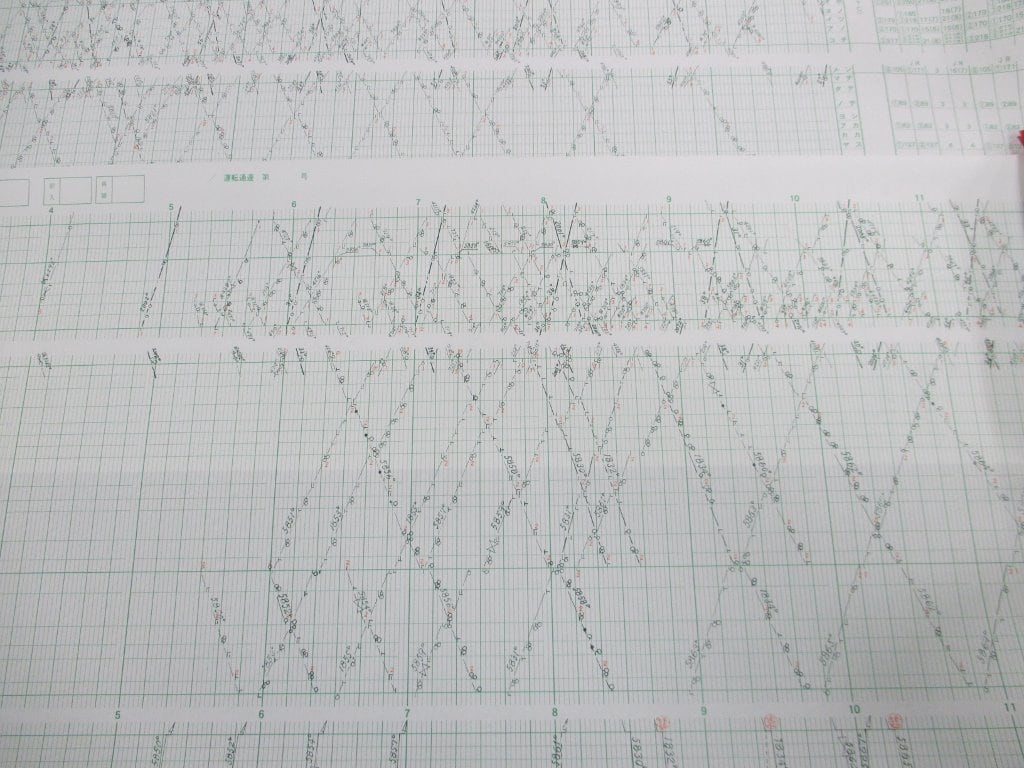 平成30年3月17日改正ダイヤの社員が作業用に使用する運行図表整理ダイヤです。