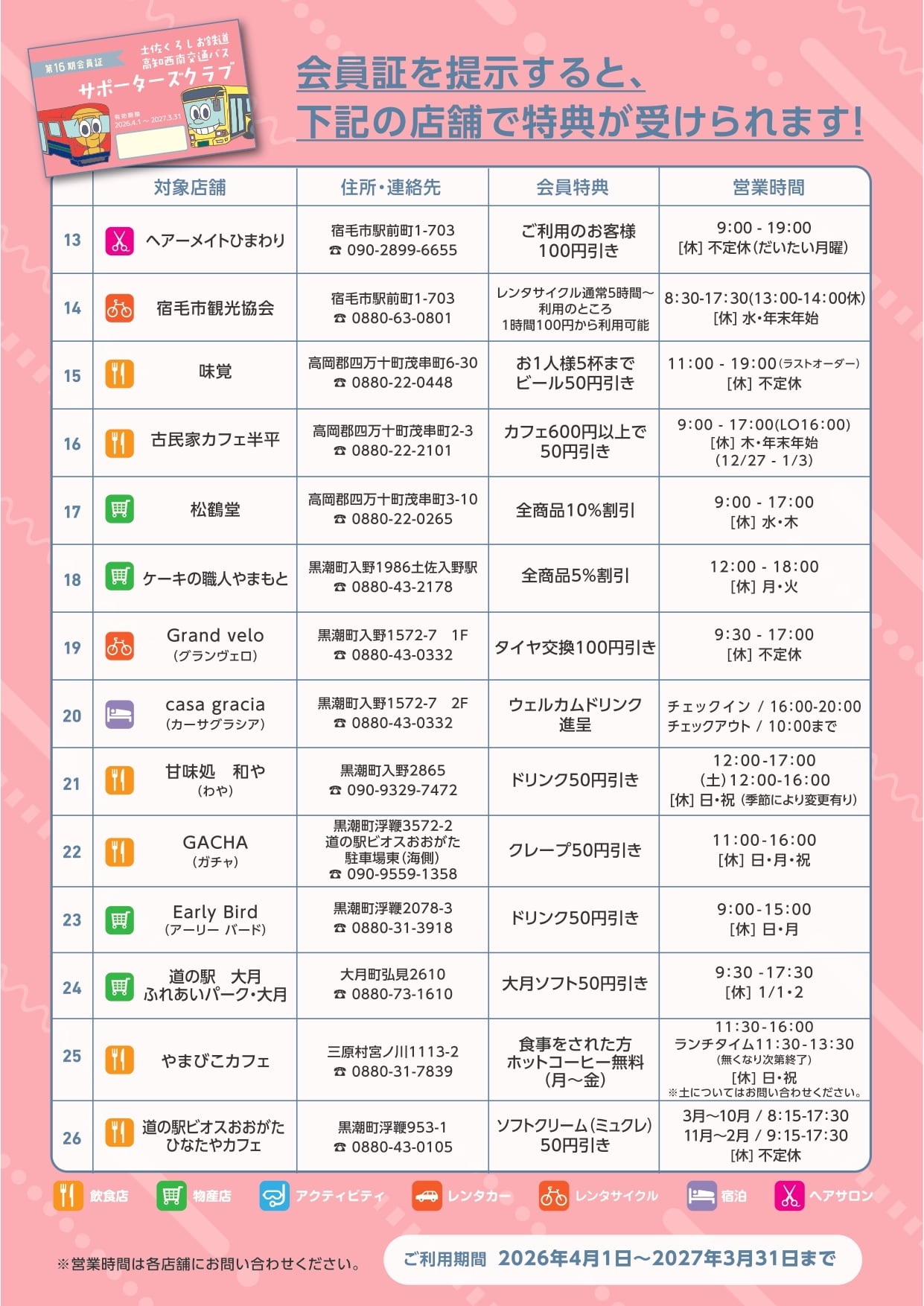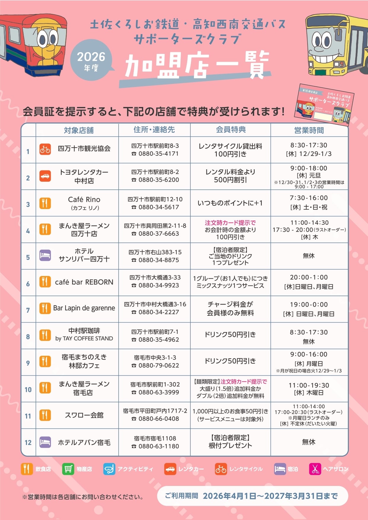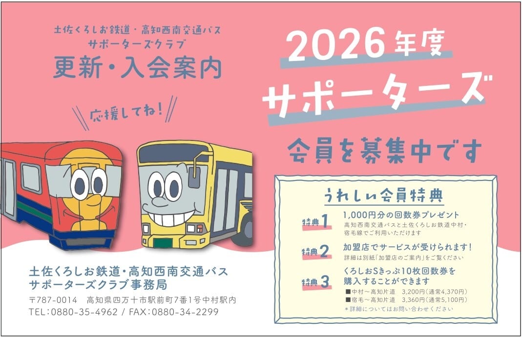 2026年度土佐くろしお鉄道・高知西南交通バスサポーターズクラブ会員